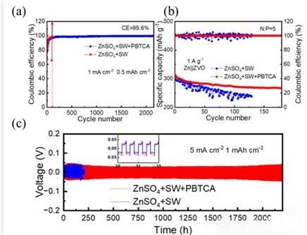 ?PBTCA參與Zn2+溶劑化結(jié)構(gòu),提升了去溶劑化勢(shì)壘,改善了Zn2+沉積形貌。