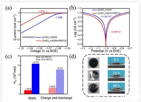 圖2.PBTCA對(duì)鋅負(fù)極腐蝕及析氫的抑制作用