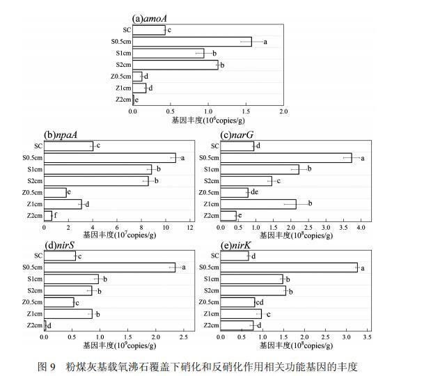 圖9粉煤灰基載氧沸石覆蓋下硝化和反硝化作用相關功能基因的豐度
