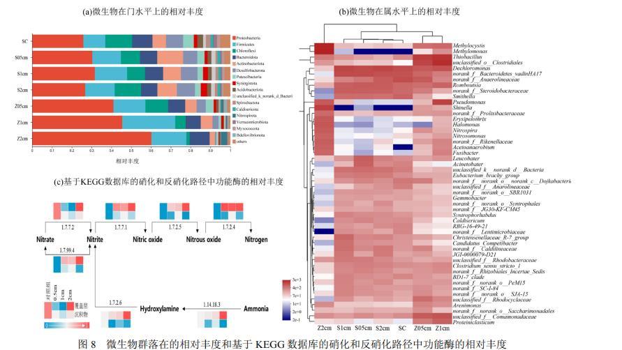 圖8微生物群落在的相對豐度和基于KEGG數據庫的硝化和反硝化路徑中功能酶的相對豐度