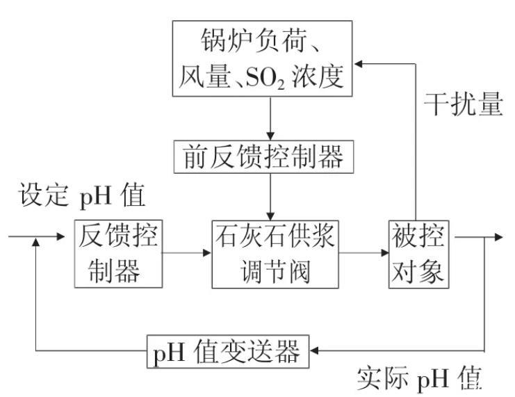 濕法脫硫系統的pH值控制采用的是單回路前反饋復合控制方式,如圖2所示。