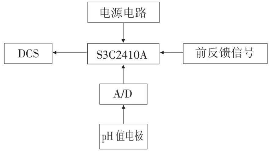 目前比較先進的pH值信號處理方式是應用ARM9微處理芯片,本設計就是利用了這個芯片來提高pH傳感器的信號處理能力將韓國三星公司生產的32位嵌入式處理器S3C2410A,它是采用ARM920T的內核把這種先進的微處理器應用于pH值前反饋控制系統中,利用ARM9處理器的強大處理能力,可以縮短pH值控制器對pH信號的處理時間,從而及時提供了對漿液的酸堿度的真實信息,有利于前臺對脫硫系統的控制,提高了脫硫效率,見圖5。