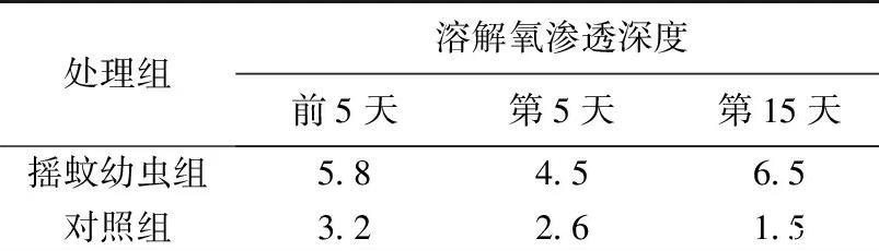 由于沉積物中微生物的有氧呼吸作用以及從下層擴散而來還原物質(zhì)的氧化,湖泊沉積物-水界面的O2滲透深度,一般僅有數(shù)毫米。在本研究中,對照組和搖蚊組的氧氣滲透深度(OPD)如表1所示。