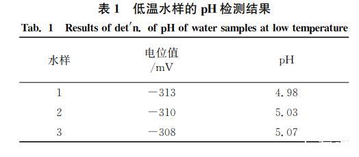 由表1可知,利用IrOx/Ti電極檢測(cè)溫度為-10℃的水樣的ph,其結(jié)果相對(duì)極差為1.8%,相對(duì)平均偏差為0.6%。