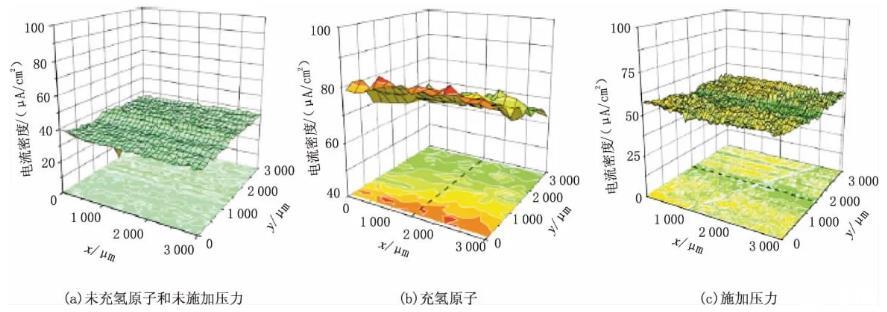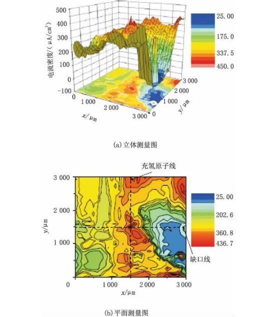 圖5 SVET電流密度測量圖(充氫+施加應(yīng)力)