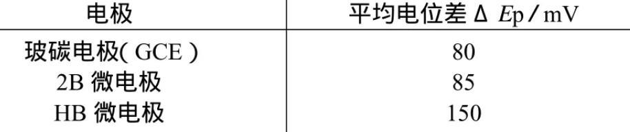由表1可知,用2B鉛筆芯制作的微電極平均電位差接近于玻碳電極,因此可以用2B鉛筆芯制作的微電極來研究AA的電化學行為。