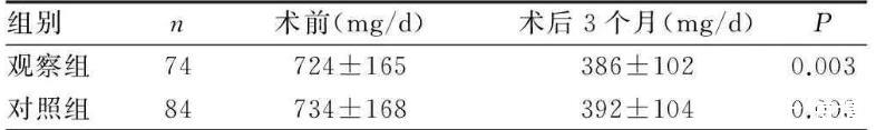 2.1治療效果本次研究所有患者術(shù)后即刻癥狀的改善率(顯效率+有效率),對照組顯效70例(83.3%),有效14例(16.7%),總有效率100%;觀察組顯效62例(83.7%),有效12例(16.3%),總有效率100%。經(jīng)3個月、6個月、1年隨訪,觀察組及對照組之間的治療效果差異無統(tǒng)計學(xué)意義(P>0.05),見表1。