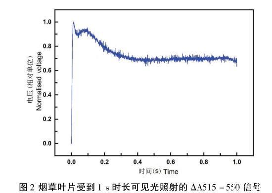 圖2煙草葉片受到1 s時(shí)長(zhǎng)可見光照射的ΔA515-550信號(hào)