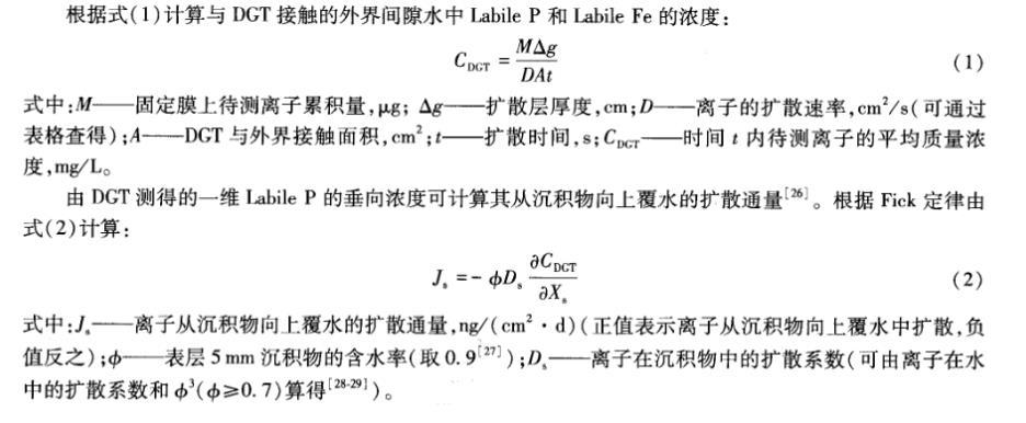 根據式(1)計算與DGT接觸的外界間隙水中LabileP和LabileFe的濃度: