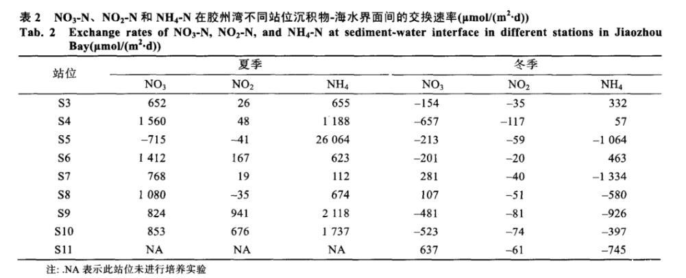 2.1膠州灣沉積物-海水界面溶解無機氮的交換速率