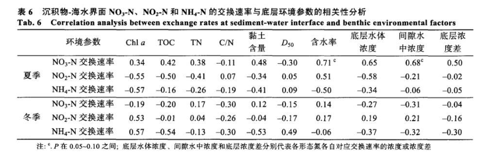 表6沉積物-海水界面NO3-N、NO2-N和NH4-N的交換速率與底層環(huán)境參數(shù)的相關(guān)性分析