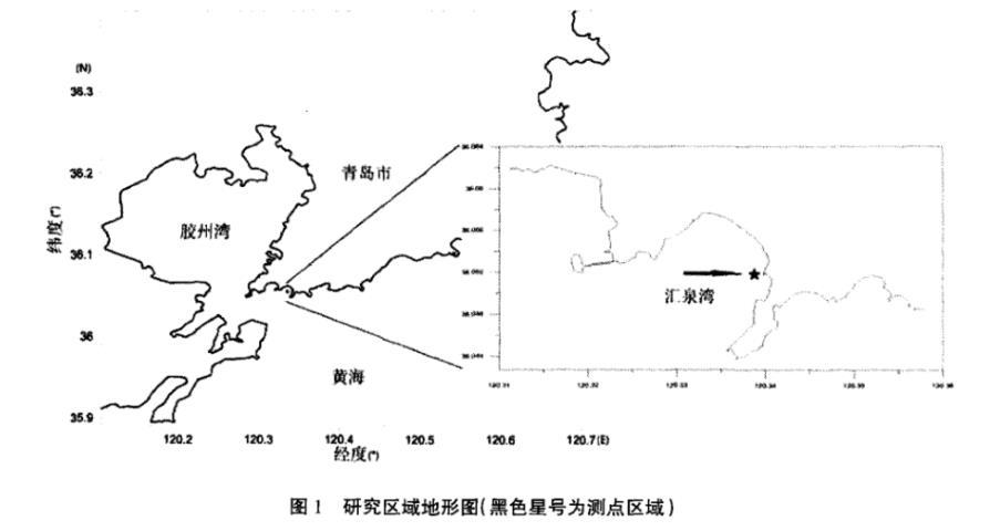 研究區位于膠州灣以東的匯泉灣(見圖1)。匯泉灣西側、北側、東側三面環山,以喇叭狀向西南方向開口與黃海相連。海灣高潮時海岸線寬約1.5km,岸灘走向西北-南東,最大面積為1.24km2,平均水深7m。由于山體阻擋了北向來風,因此灣內主要受SSE向風浪影響。匯泉灣為典型的砂質海岸,自西北向東南沉積物類型由細礫、粗砂、中砂、細砂依次分布變化。海灣潮汐類型屬正規半日潮,潮流半日周期往復運動,漲潮時流向為順時針方向,退潮時流向為逆時針方向。匯泉灣內0~2cm表層沉積物中葉綠素a含量在1.73~5.71μg/g,2~5cm沉積物中葉綠素a含量在0.51~4.32μg/g范圍內。