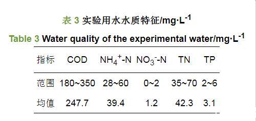 表3實驗用水水質特征/mg·L-1