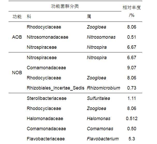 表6科級和屬級的脫氮除磷相關關鍵功能菌群