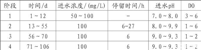 表1高效亞硝化反應(yīng)器不同階段下運行參數(shù)