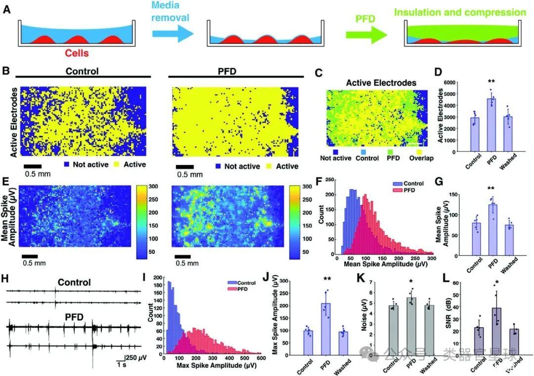 首次提出了一種通過在神經組織上覆蓋全氟十二烷(PFD)來增強微電極陣列(MEA)電生理測量的方法。