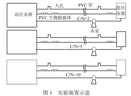 城市生活污水C/N比一般在5左右,在排水管道系統(tǒng)內(nèi)對COD的去除較容易,但對氮的去除相對較難。為了提高氮的去除效果,必須探索不同C/N條件下氮形態(tài)在生物膜內(nèi)的遷移轉(zhuǎn)化特征及其影響因素。Okabe等通過研究不同C/N比下非限制性混合群體生物膜中硝化細(xì)菌和異養(yǎng)細(xì)菌的群體動力學(xué)和硝化效率之間的關(guān)系發(fā)現(xiàn),生物膜中最初的微生物組成和基質(zhì)成分(如C/N比等)極大地影響著后來的群體動力學(xué)行為和硝化效果。高C/N比將延遲硝化細(xì)菌的積累,但在后來的運(yùn)行中將會得到相對穩(wěn)定的硝化效果。