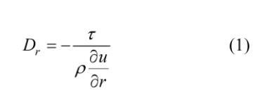 式中:Dr為徑向紊動擴散系數;τ為距管軸為r處的紊動切應力;u為距管軸為r處的流體流速。