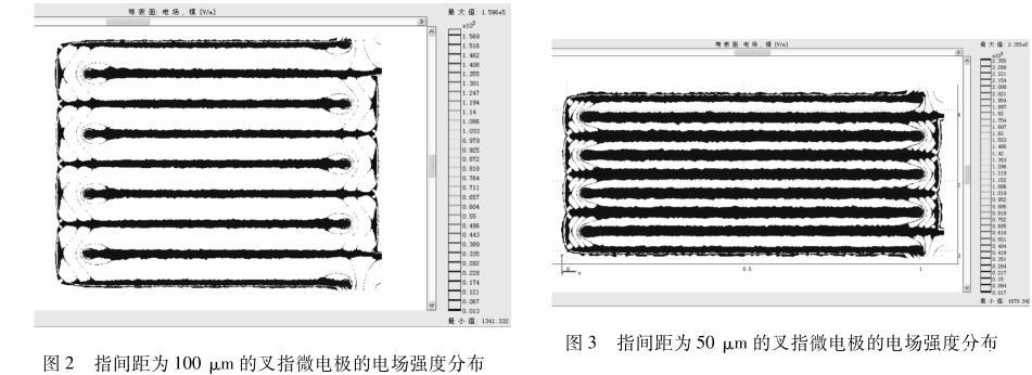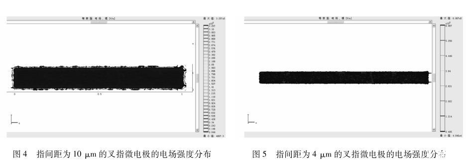 圖5指間距為4μm的叉指微電極的電場強度分布