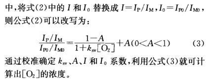 通過校準確定ksv、A、I和I0系數,利用公式(3)就可計算出氧的濃度。