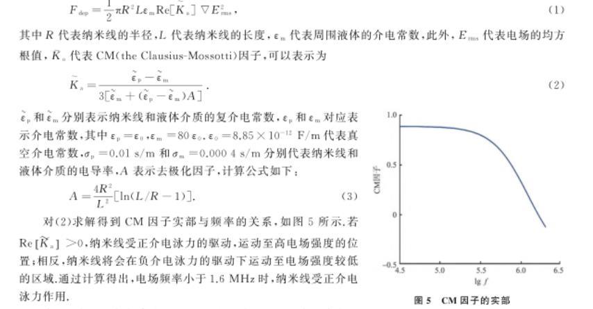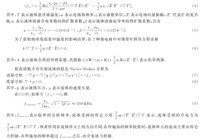 在微間隙電極系統介電組裝過程中,納米線在中高頻環境下的移動是由近場介電泳力和遠場電熱對流共同引起的。移動速度為