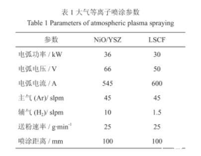 表1大氣等離子噴涂參數
