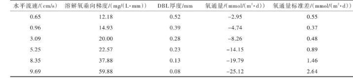 表1不同水平流速下溶解氧垂向梯度、DBL厚度和氧通量試驗結果