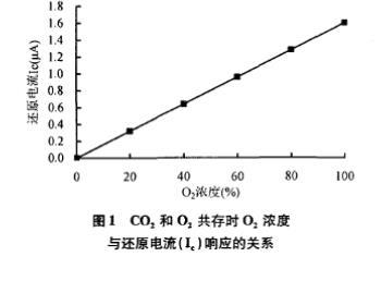 圖l CO2:和o:共存時o:濃度與還原電流(I)響應的關系