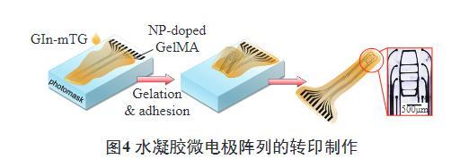 圖4水凝膠微電極陣列的轉(zhuǎn)印制作