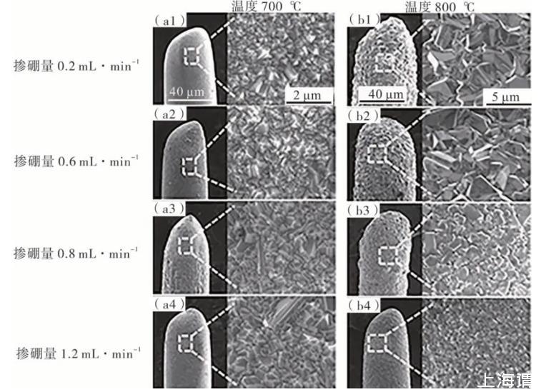 圖2不同BDD薄膜表面的SEM圖