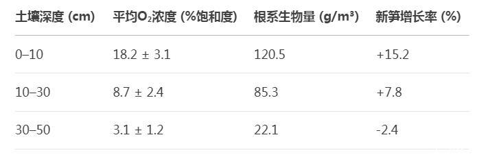 正相關:土壤O?濃度較高(>10%飽和度)的區域,雷竹根系密度大,生長速度更快。
