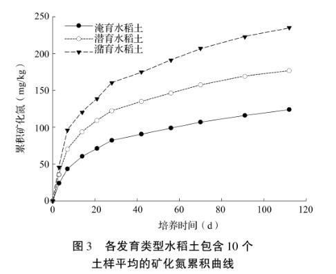 圖3各發育類型水稻土包含10個土樣平均的礦化氮累積曲線