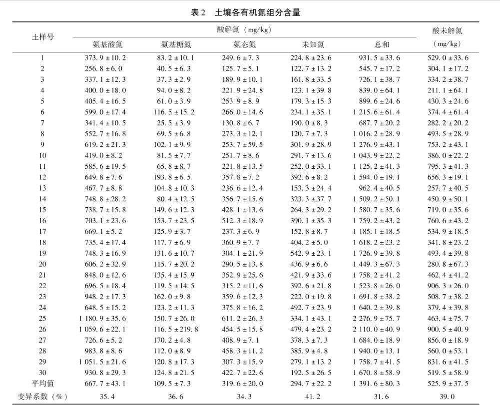 表2土壤各有機氮組分含量