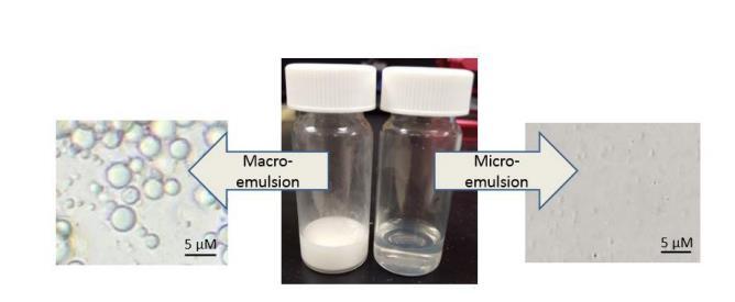 圖S1.使用0.1%NSBM#4和100 ppm Triton X-100制備的合成水包油宏乳液和微乳液樣品照片。