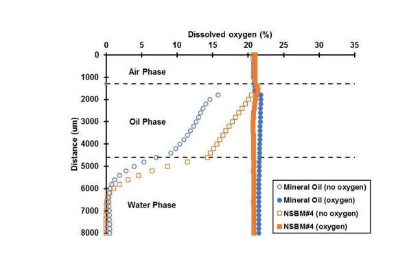 圖S9.通過空氣、油和水相的DO微剖面。水相完全飽和氧氣(21%DO)或不含氧氣(0%DO)。