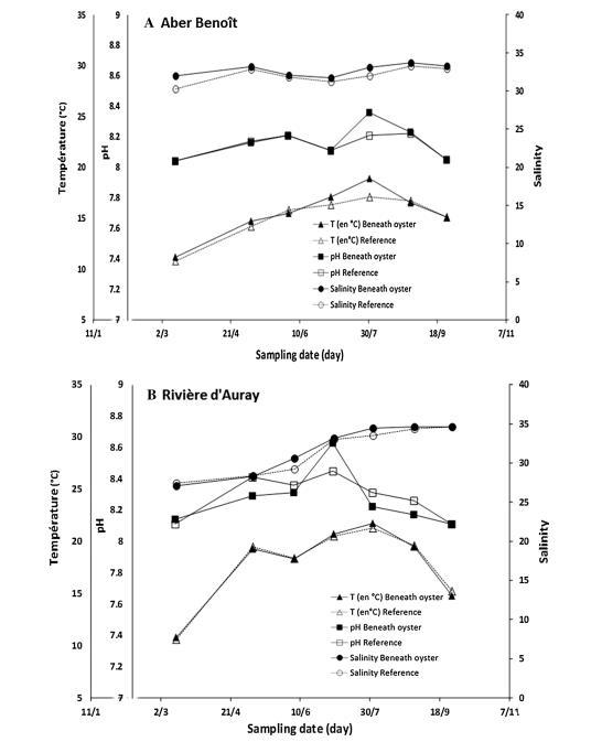 首先使用Shapiro和Wilk檢驗評估數據集的常態性(www.anastats.fr)。使用Spearman或Bravais-Pearson檢驗評估變量之間的關系(Xlstat)。進行Mann-Whitney檢驗以確定每個研究期間參考站點和牡蠣站點之間生物地球化學參數的顯著差異(www.anastats.fr)。對于所有檢驗,當p<0.01時認為值顯著。