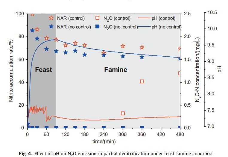 3.2.4乙酸"充足-匱乏"條件下pH對(duì)N2O排放的影響