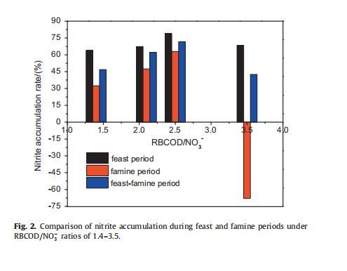 3.2.1.RBCOD/NO3-比對(duì)亞硝酸鹽積累的影響