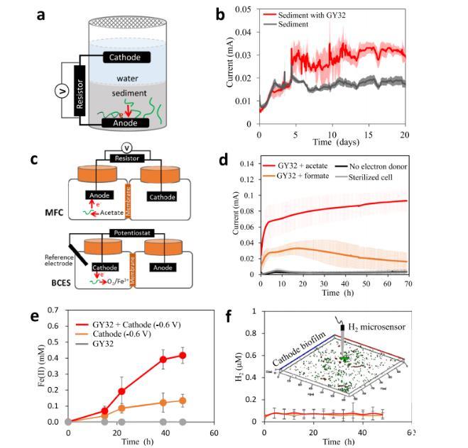 研究簡介:電子傳遞對于能量產(chǎn)生和生命新陳代謝至關(guān)重要。細菌在將電子轉(zhuǎn)移到各種化學物質(zhì)和保存能量的能力方面具有多功能性。除了用細胞內(nèi)化學物質(zhì)(如氧氣、硫酸鹽或硝酸鹽)呼吸外,細菌還可以用外部接觸的化學物質(zhì)(如礦物顆粒)進行呼吸(即胞外電子傳遞,簡稱EET)。一些單細胞細菌能夠以數(shù)十微米的距離向化學物質(zhì)或其他微生物細胞進行長距離電子轉(zhuǎn)移(簡稱LDET),多細胞的電纜細胞則可以在厘米范圍內(nèi)傳輸電子。本研究主要就一種革蘭氏陽性細菌——Lysinibacillus varians GY32進行了相關(guān)研究,揭示了其在長距離胞外電子轉(zhuǎn)移(LDET)中的獨特能力。LDET是指細菌通過細胞外結(jié)構(gòu)將電子轉(zhuǎn)移到遠離細胞表面的受體,這一過程在自然生態(tài)系統(tǒng)和生物電化學應(yīng)用中具有重要意義。此前,LDET主要被認為局限于革蘭氏陰性細菌,而本研究首次在革蘭氏陽性細菌中觀察到這一現(xiàn)象。Lysinibacillus varians GY32是一種絲狀單細胞細菌,能夠形成厘米級的導電細胞網(wǎng)絡(luò)。在微生物燃料電池(MFC)中,GY32能夠利用乙酸鹽或甲酸鹽作為電子供體,將電子傳遞給石墨電極,產(chǎn)生顯著的電流。實驗表明,GY32在MFC中的最長細胞長度可達1.08毫米,遠超過其他已知單細胞細菌。這種長距離電子轉(zhuǎn)移能力不僅體現(xiàn)在MFC中,還在沉積物微生物燃料電池(SMFC)中得到驗證,表明GY32能夠在自然沉積物環(huán)境中穩(wěn)定地進行電子轉(zhuǎn)移。研究通過多種實驗手段,包括原子力顯微鏡(AFM)、透射電子顯微鏡(TEM)、循環(huán)伏安法(CV)和微電極技術(shù)等,揭示了GY32細胞表面的納米絲狀附屬結(jié)構(gòu)是其導電性的關(guān)鍵。這些納米絲狀附屬結(jié)構(gòu)具有與金相近的功函數(shù),表明其導電性遠高于細胞包膜。此外,轉(zhuǎn)錄組分析顯示,在MFC條件下,GY32的某些c型細胞色素基因表達上調(diào),可能參與電子轉(zhuǎn)移過程。本研究不僅擴展了對革蘭氏陽性細菌電子轉(zhuǎn)移能力的認識,還為開發(fā)新型生物電化學系統(tǒng)提供了新的思路。Lysinibacillus varians GY32的長距離電子轉(zhuǎn)移能力使其在生物傳感器、生物電池和環(huán)境修復等領(lǐng)域具有潛在的應(yīng)用價值。未來的研究將進一步探索其電子轉(zhuǎn)移機制,并優(yōu)化其在實際應(yīng)用中的性能。