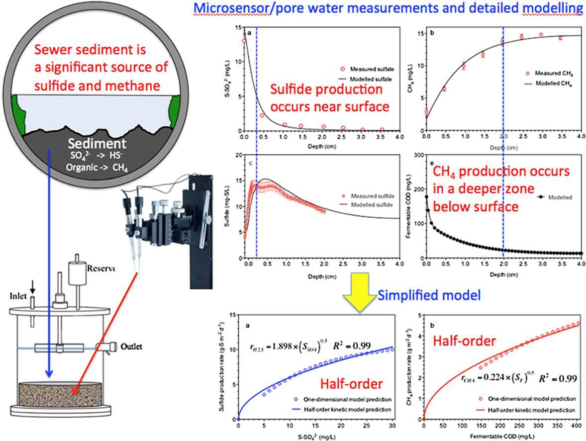 以實驗室污水底泥為研究對象,研究了污水底泥中硫化物和甲烷的生成。主要結論如下:1.下水道沉積物是硫化物和甲烷的重要來源,硫化物和甲烷的面積產量分別大于和可與下水道生物膜相比。2.由于硫酸鹽的滲透限制,硫化物的生成發生在沉積物表面附近,而甲烷的生成也發生在離沉積物表面較近的地方,但由于可溶性有機物的滲透較深,與硫化物的生成相比,甲烷的生成區域要厚得多。硫酸鹽還原菌與產甲烷古菌的動力學差異決定了沉積物中微生物群落的分層和微生物活動。3.沉積物中硫化物和甲烷的產率可以用半階動力學方法很好地描述,它們分別與體積液相硫酸鹽和可發酵有機碳濃度有關。