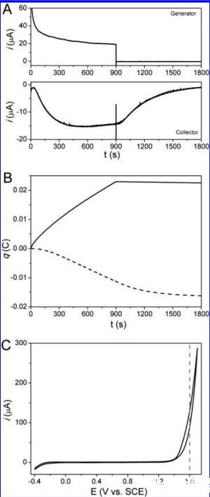 不足以引發氧氣產生的負電位下進行實驗,同時將集電極置于O?還原電位,得到由池中殘留O?引起的總電荷。仔細應用這種方法即使在未能完全隔絕大氣密封的情況下也能測量η_{O?}。在這些實驗中,首先通過將集電極置于足以還原O?的電位而不對發生器施加電位,使C-G池進行電化學吹掃是便捷的。通過此程序,在啟動確定η_{O?}的實驗之前,電極之間溶液體積中的任何殘留O?被去除。