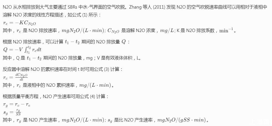 在三個反應器中處理模擬市政廢水與豬糞消化液混合物的合成廢水,其特點是低COD:N比(特別是低BOD:N比)。合成廢水中的碳源是葡萄糖(COD平均為700 mg/L)。為了研究COD:N比對好氧顆粒污泥SBRs中N2O排放的影響,N2O測量實驗連續包括三個運行階段(每個階段10天),每個階段廢水中NH4-N濃度分別為148、106和74 mg/L,對應于COD:N比為1:0.22、1:0.15和1:0.11。合成廢水中的氮源是(NH4)2SO4(對于NH4-N濃度148、106和74 mg/L,合成廢水中分別含有700、500和350 mg/L的(NH4)2SO4)。合成廢水的其他組分包括100 mg/L KH2PO4,500 mg/L K2HPO4,100 mg/L NaCl,200 mg/L MgCl2,20 mg/L FeCl2和20 mg/L CaCl2。合成廢水以平均有機負荷率2.1 kg COD/(m3d)輸入SBRs。