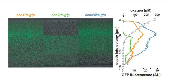 使用25μm尖端的氧微量傳感器(Unisense OX-25)測量生物膜生長頭2天內的氧濃度。在對生長3天的菌落進行氧氣分析時(圖4),生物膜的生長過程與薄片分析相同。為了校準氧氣微電極,使用了兩點校準法。首先使用校準室(Unisense CAL300)將氧微傳感器校準為大氣中的氧氣,校準室中裝有持續冒著氣泡的水。然后,使用充入N2的缺氧水溶液將微傳感器校準到"零"點;為確保完全去除所有氧氣,在將微傳感器校準到零校準點之前,向校準室充入N2至少30分鐘。然后在生物膜的整個深度進行氧氣測量,測量時間為3秒,兩次測量之間的等待時間為5秒。對于6個生長期的菌落,整個菌落的剖面步長為1μm;對于12小時和24小時的菌落,步長為2μm;對于48小時的菌落,步長為5μm。使用微型機械手(Unisense MM33)在生物膜內移動微型傳感器,并使用萬用表(Unisense)和Sensor Trace曲線軟件(Unisense)記錄曲線。