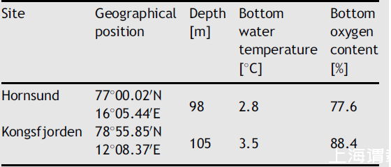 圖5、霍恩松德和康斯峽灣的采樣站——地理位置、底層水溫和含氧量