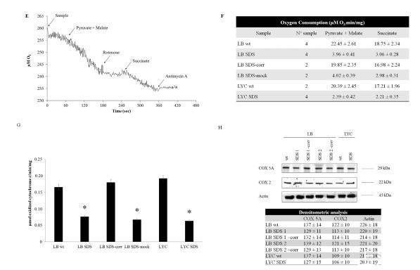 評估Shwachman細胞的耗氧量。用微呼吸系統(Unisense A/S)在25°C的密閉室內測量耗氧量。每次實驗使用50萬個細胞。細胞用0.3毫克/毫升的地高辛滲透1分鐘。加入10毫摩爾丙酮酸和5毫摩爾蘋果酸以刺激復合體I、III和IV通路。加入20毫摩爾琥珀酸以刺激復合體II、III和IV通路。羅替酮(0.1mM)或抗霉素A(0.2mM)分別用作第一和第二途徑的抑制劑。羅替諾酮被認為是復合物I(NADH-氧化泛醌還原酶)的特異性抑制劑,因為它能阻止電子從鐵硫中心N2轉移到泛醌。這就在線粒體基質內形成了電子備份。