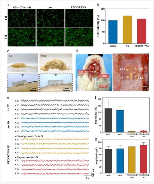 圖5.SMBE電極的生物相容性評價及動物實驗驗證