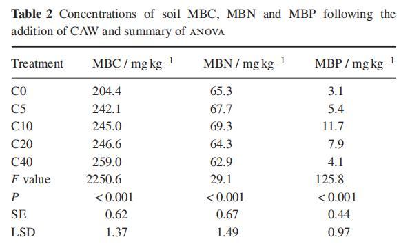 CAW對土壤微生物生物量的影響