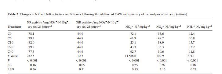CAW對蘋果根區(qū)土壤NR和NiR活性及氮形態(tài)的影響