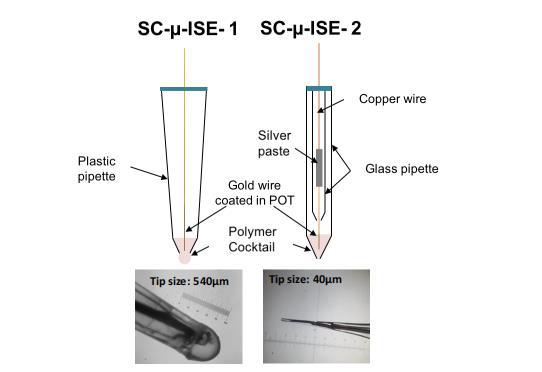 圖1:SC-μ-ISE 1(左)和SC-μ-ISE 2(右)的示意圖和照片。