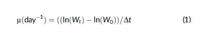 式中 W0 和 Wt 為培養期開始和結束時的鮮重; Dt 是采樣間隔之間的天數。